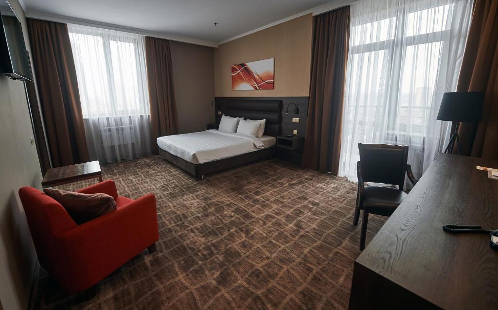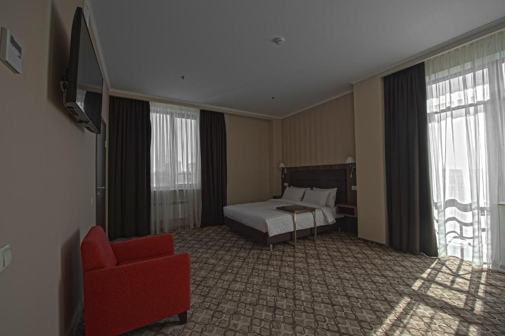 В "Стандартных «Улучшенных»" 35 кв.м. В номере 1 большая двуспальная кровать.